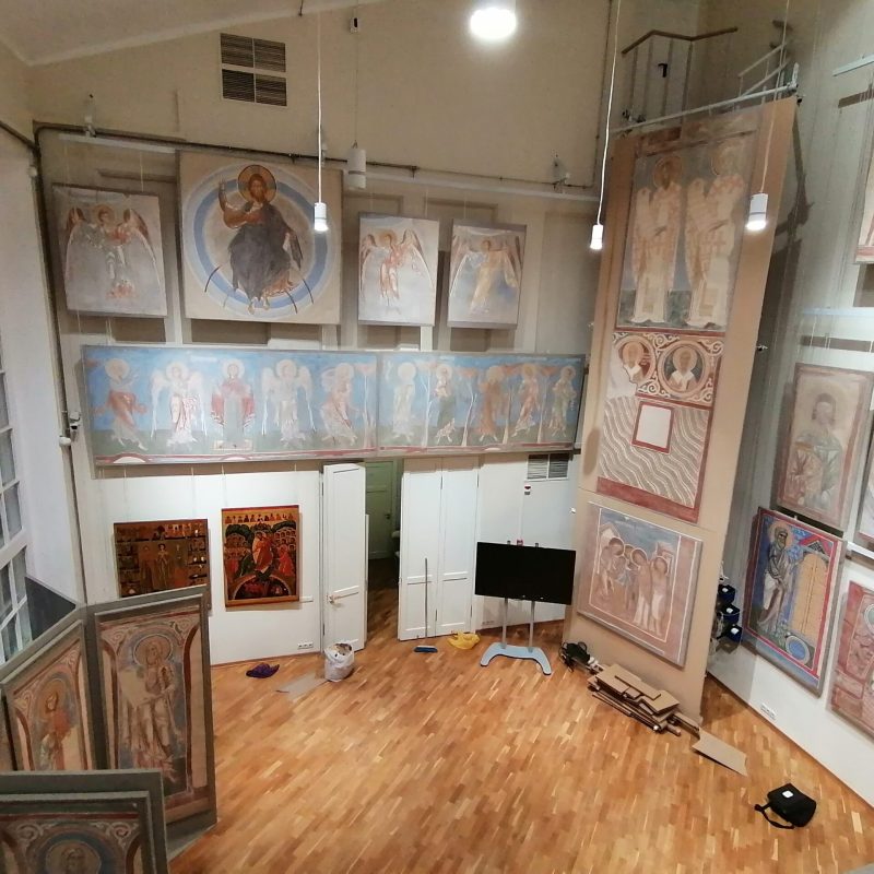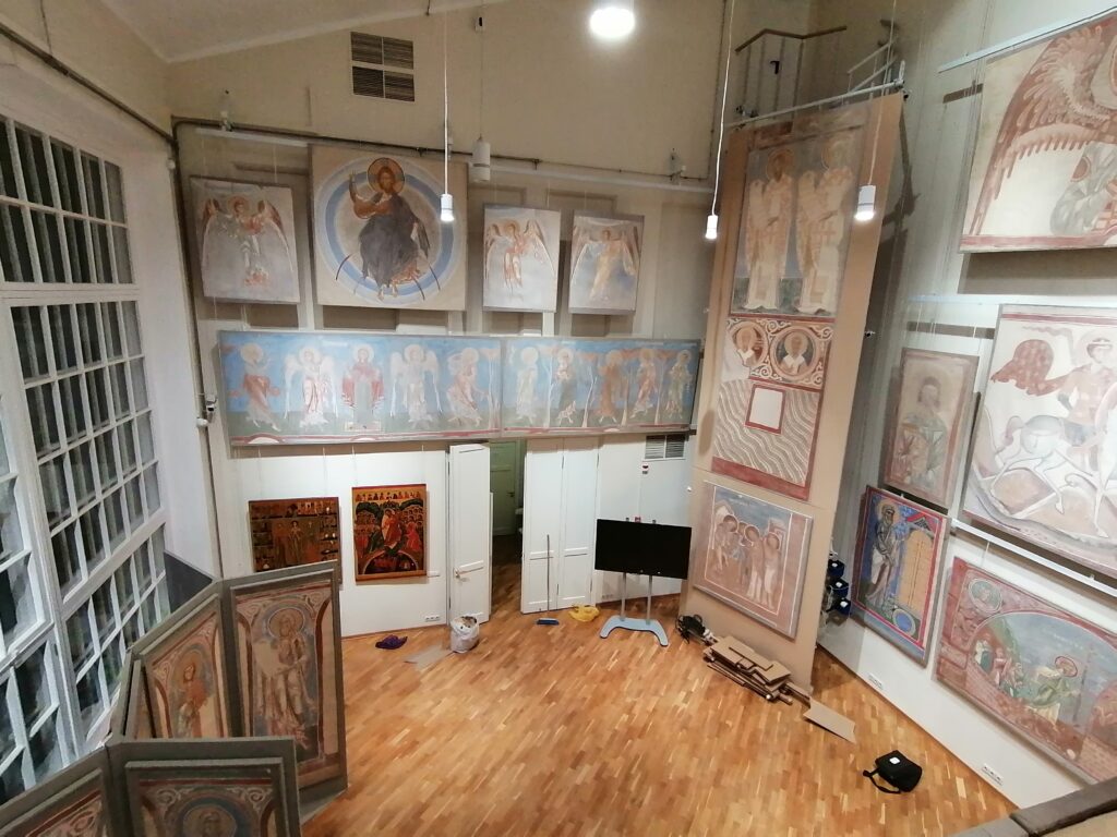 Il suo lavoro ci offre oggi la possibilità di vedere «faccia a faccia» il Cristo situato nella cupola, gli angeli e i profeti che gli fanno corona nel tamburo, e il Giudizio universale nei matronei. Sono esposte anche alcune copie di affreschi appartenenti ad altri cicli, che si spera possano essere esposti nella loro interezza in seguito: alcuni soggetti di antiche chiese della Georgia, e della chiesa di Meletovo (Pskov).