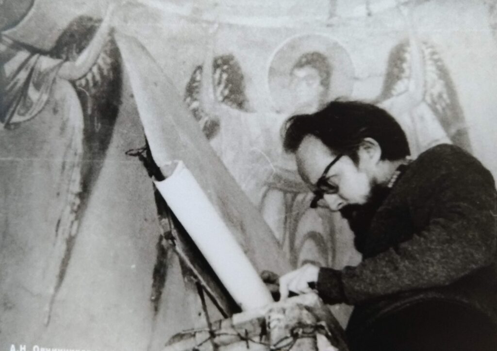 Nikolaj Syčev, negli anni ’40, durante i lavori di restauro a Vladimir.