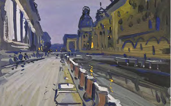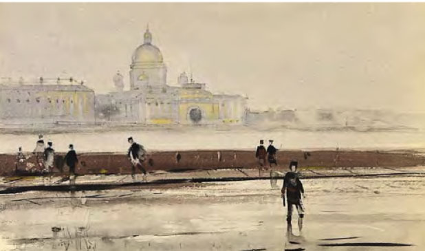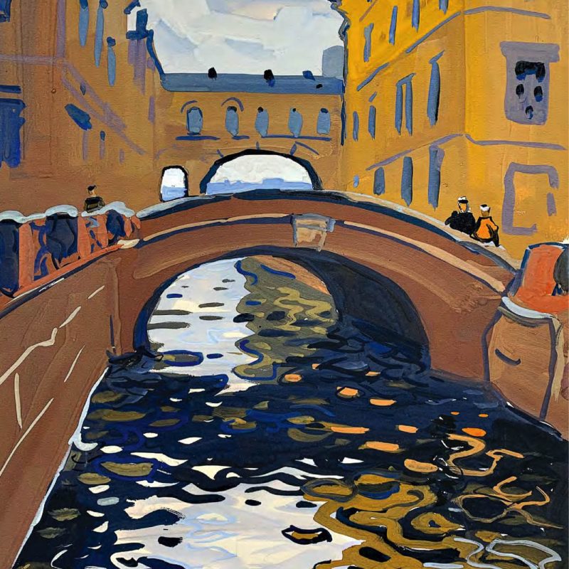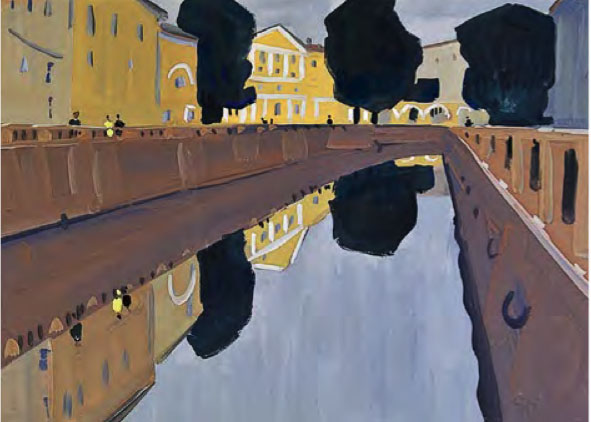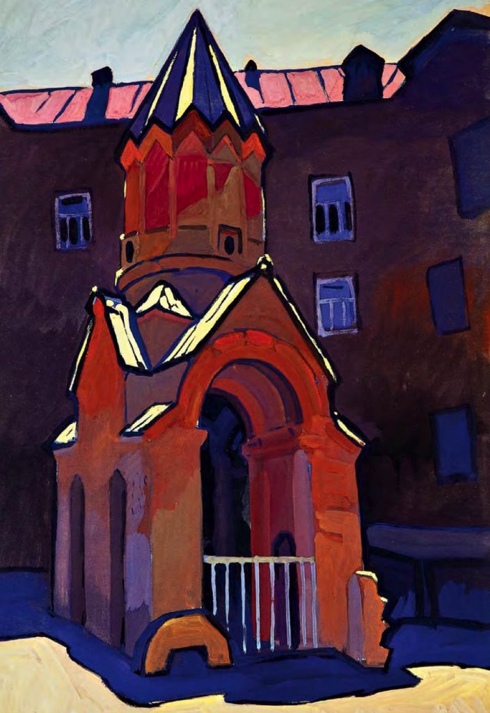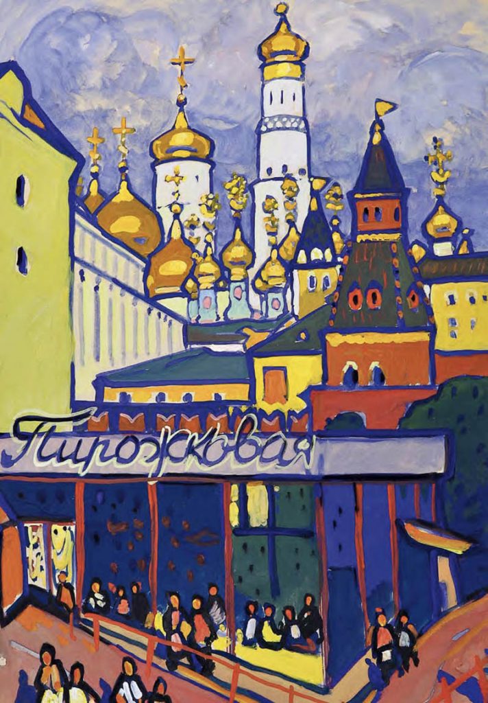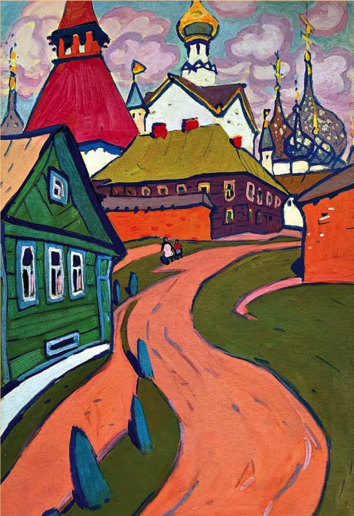 Straordinario come l’artista sia stato in grado di elaborare, dalla fine degli anni ’50 al 1971 – in un decennio tutt’altro che facile per la cultura cristiana, tra l’acuirsi delle repressioni chruščeviane nei confronti delle comunità cristiane e la successiva «stagnazione» – dei cicli dedicati alle antiche città russe, di cui dipinge (come amava dire lui stesso) «ritratti» ad acquarello e a gouache, le cui dominanti sono indubbiamente le chiese. Un posto particolare nel «ciclo russo» di Chimič spetta al Cremlino di Rostov (cui è dedicato il calendario 2021 di Russia Cristiana), edificato nel XVII secolo dal metropolita Iona come immagine della Gerusalemme celeste. Con ogni probabilità l’artista, in epoca sovietica, non poteva essere a conoscenza dei particolari di questa vicenda e delle concezioni teologiche che avevano guidato il vescovo, eppure – fa notare Sorokin – i suoi quadri non ci parlano delle vestigia di un’epoca tramontata, ma ci mostrano questo straordinario complesso architettonico hic et nunc, come un luogo di vita, di una Presenza.