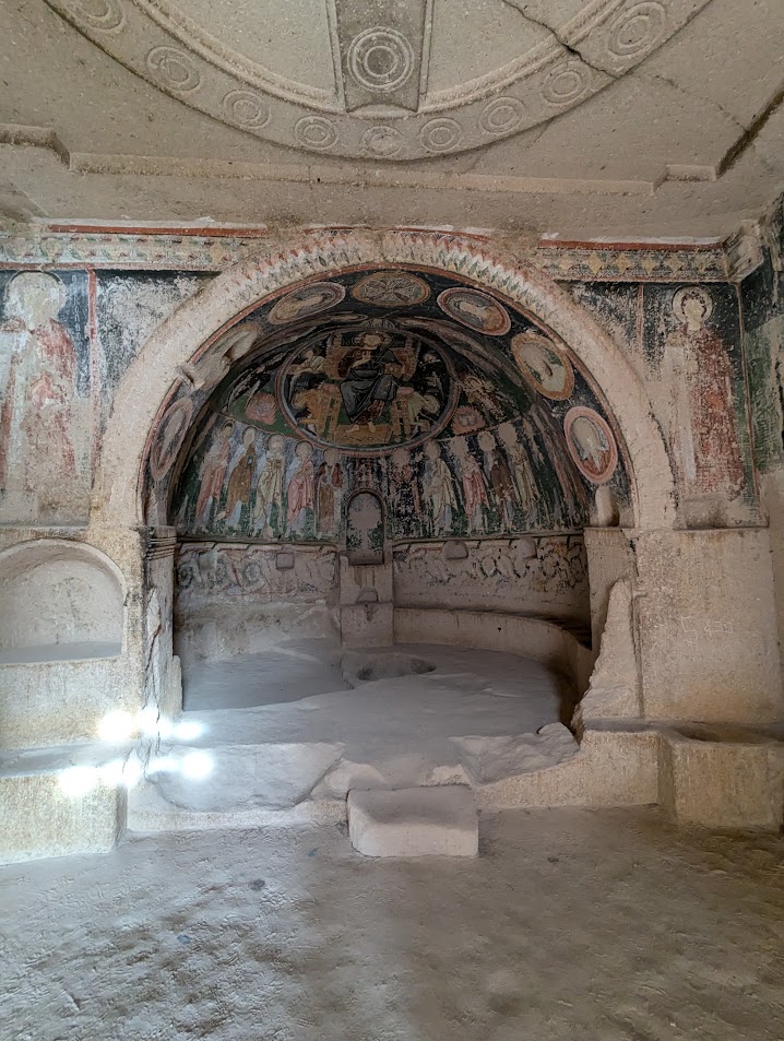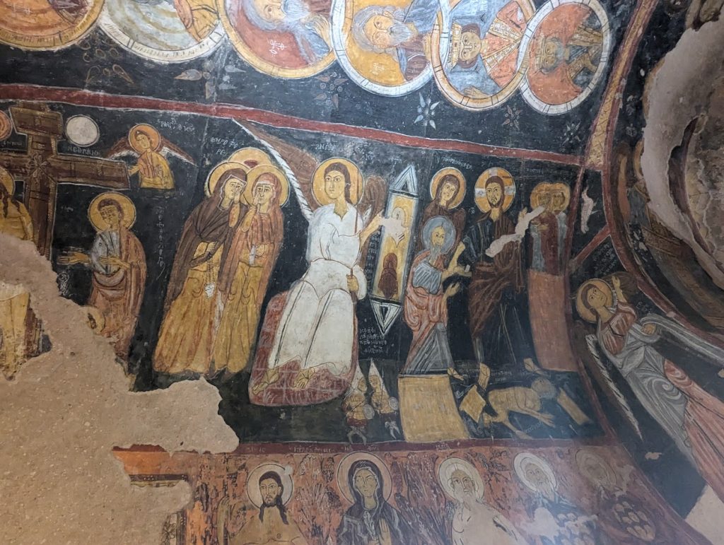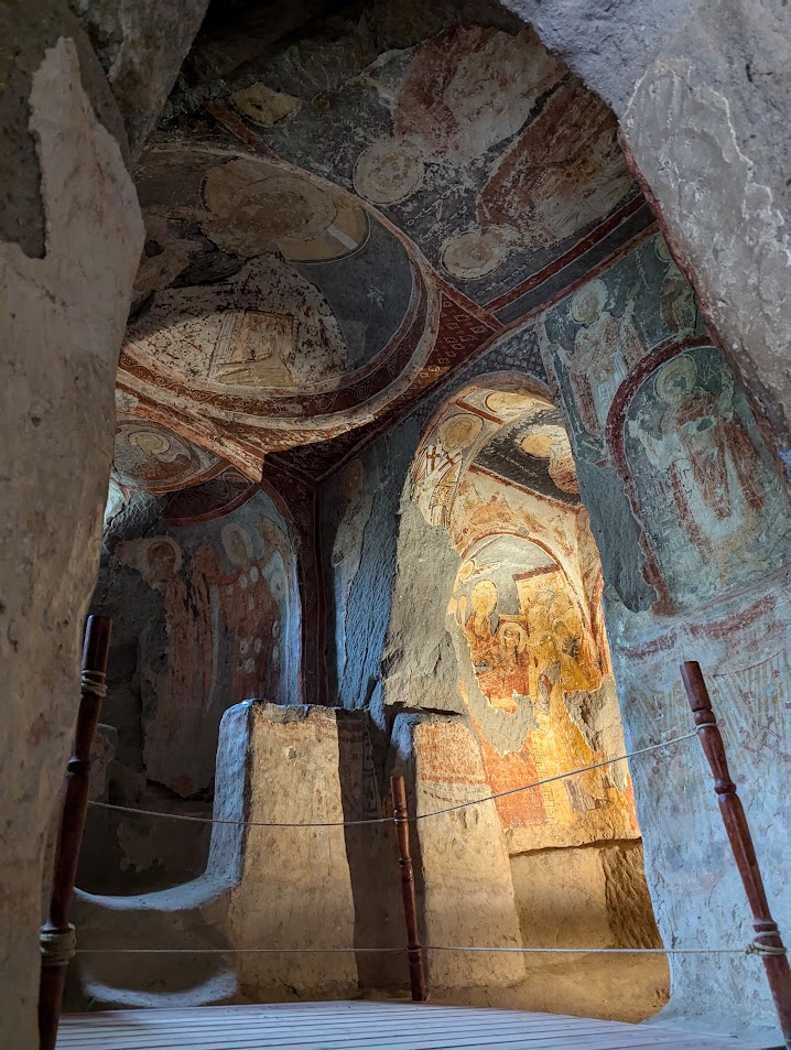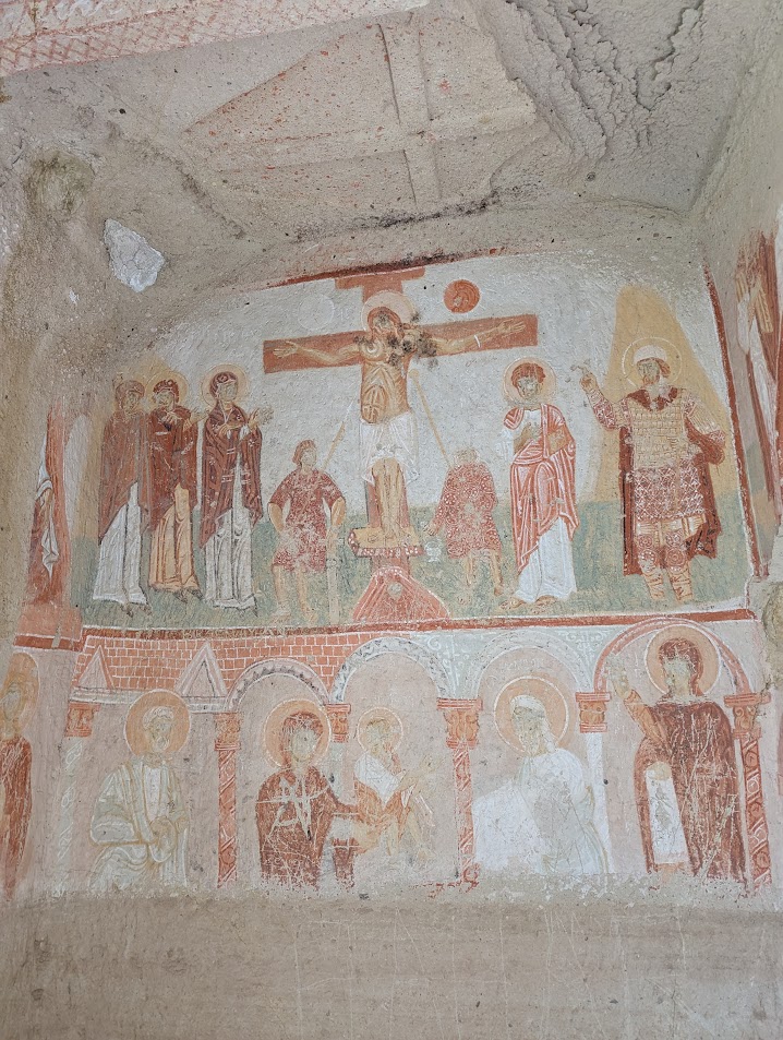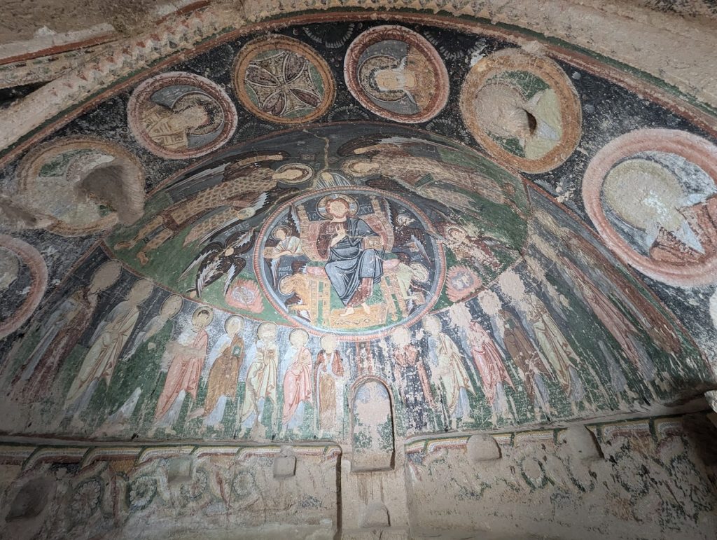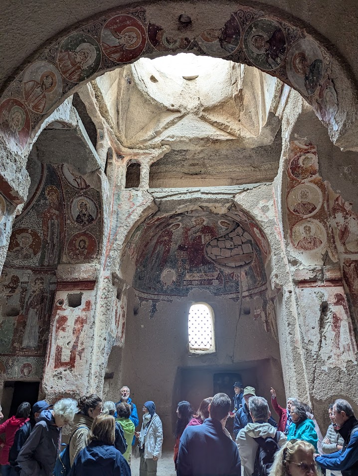 Il gruppo è stato accompagnato da Sergej Šichačevskij, fotografo ed esperto di arte che ha studiato a fondo le pitture contenute nelle splendide chiese rupestri della regione, e Giovanna Parravicini, ricercatrice della Fondazione Russia Cristiana. In Cappadocia sorprende l’enorme varietà artistica degli edifici sacri: da quelli più antichi risalenti al V-VI secolo, a quelli più tardi del XII secolo, da quelli più ricchi di pitture a quelli più spogli e ricercati per lo stile architettonico. Si tratta infatti di un grande laboratorio artistico per capire come tradurre in modo convincente la verità cristiana ai contemporanei. L’arte della Cappadocia – i cui studi sono ancora alle fasi iniziali – è un’esperienza particolare e variegata, che ha subito molte influenze per la posizione della regione situata in una sorta di crinale fra l’Oriente e l’Occidente.