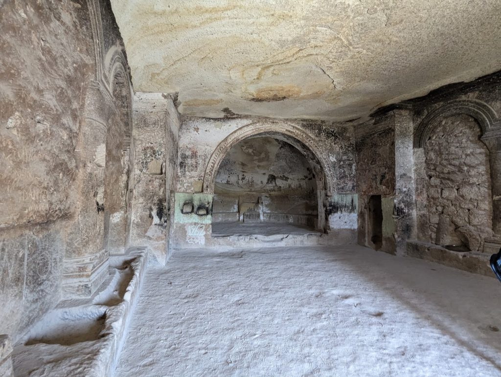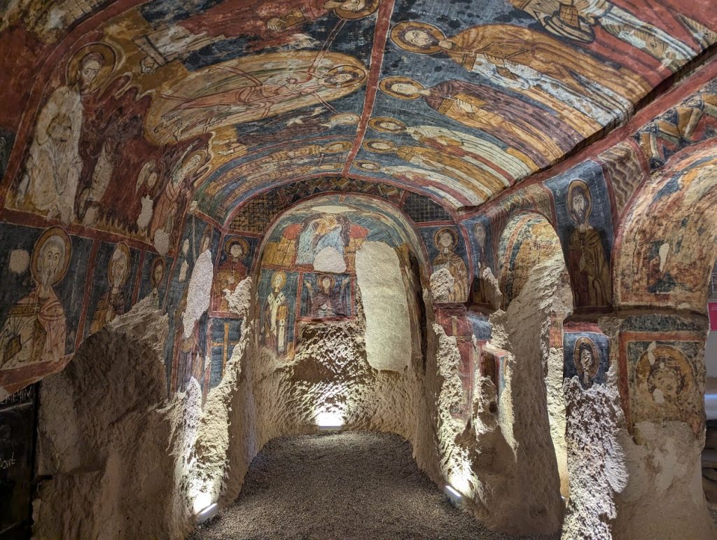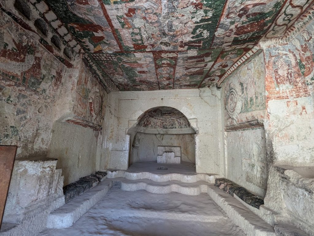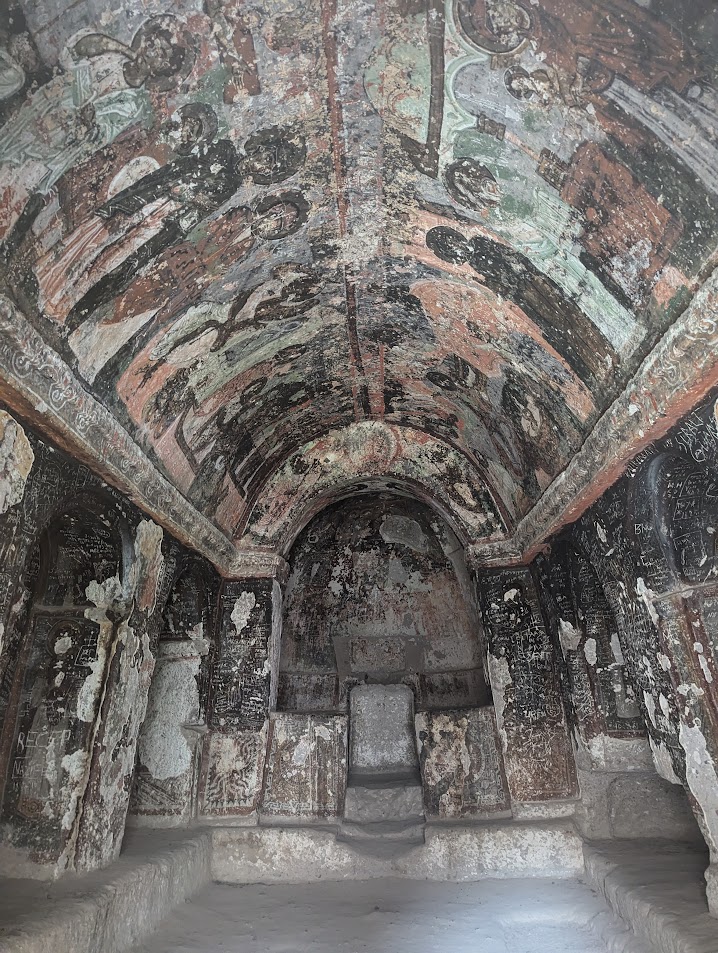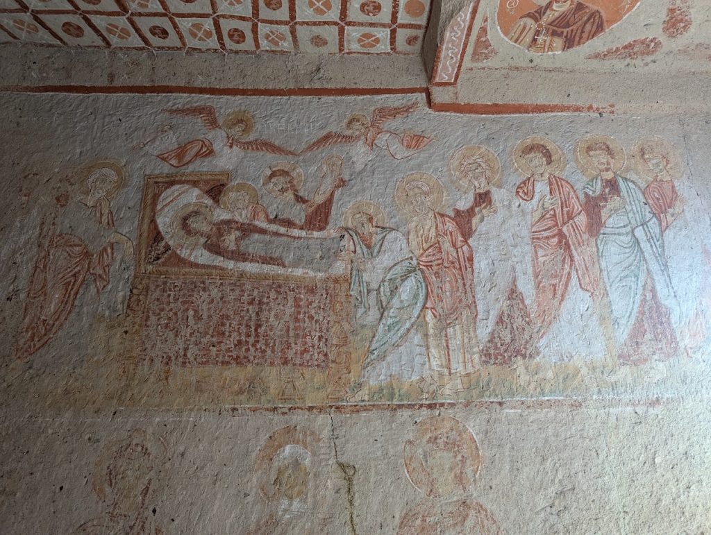 Il gruppo è stato accompagnato da Sergej Šichačevskij, fotografo ed esperto di arte che ha studiato a fondo le pitture contenute nelle splendide chiese rupestri della regione, e Giovanna Parravicini, ricercatrice della Fondazione Russia Cristiana. In Cappadocia sorprende l’enorme varietà artistica degli edifici sacri: da quelli più antichi risalenti al V-VI secolo, a quelli più tardi del XII secolo, da quelli più ricchi di pitture a quelli più spogli e ricercati per lo stile architettonico. Si tratta infatti di un grande laboratorio artistico per capire come tradurre in modo convincente la verità cristiana ai contemporanei. L’arte della Cappadocia – i cui studi sono ancora alle fasi iniziali – è un’esperienza particolare e variegata, che ha subito molte influenze per la posizione della regione situata in una sorta di crinale fra l’Oriente e l’Occidente.