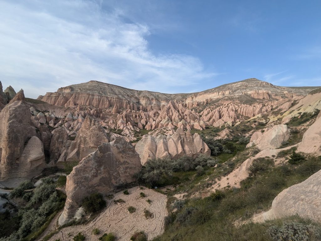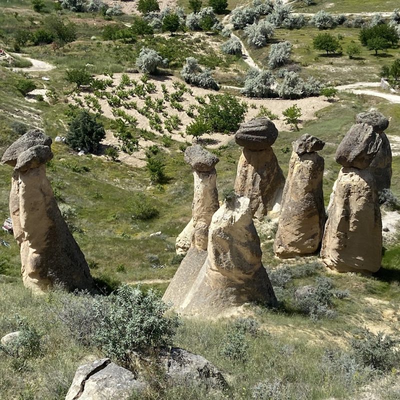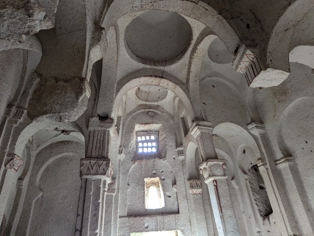 In Cappadocia si alternano paesaggi suggestivi per via delle particolari conformazioni rocciose dovute a eruzioni vulcaniche, e valli con boschi e canyon ricchi di sorgenti. Ovunque possono trovarsi chiese incastonate nella roccia che riproducono lo schema classico delle chiese tradizionali. La pietra veniva, infatti, scavata dall’interno, grazie ai costruttori che si recavano fino al punto più alto dell’edificio e poi scendevano verso il basso modellando poi gli elementi architettonici.