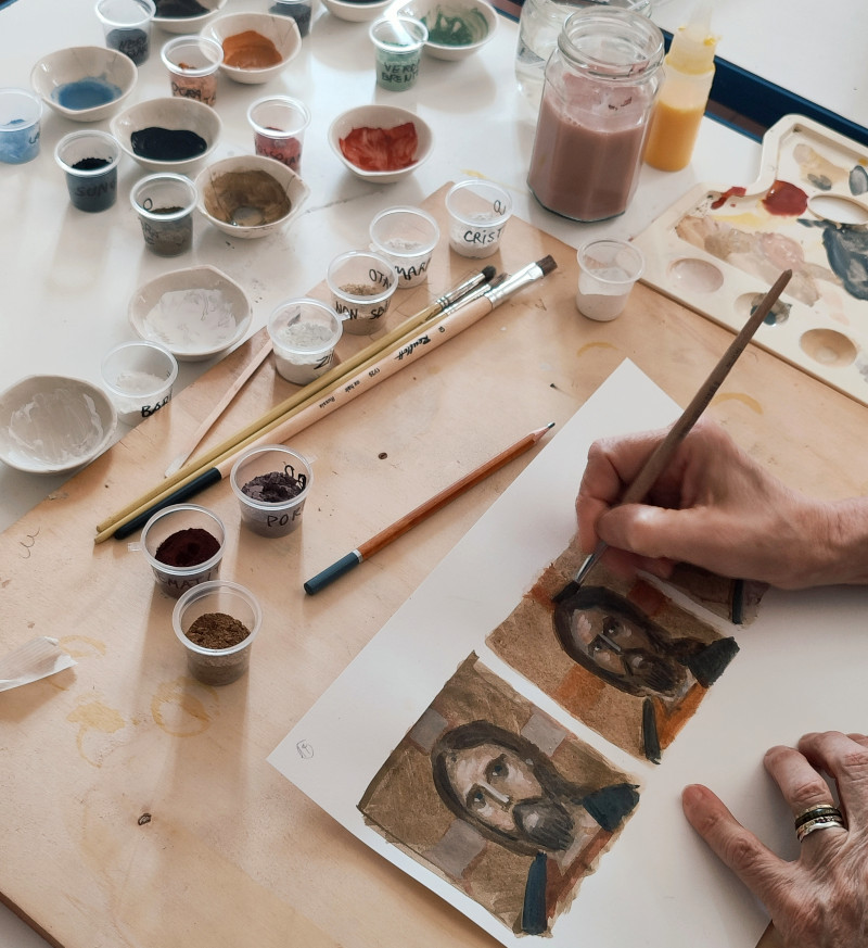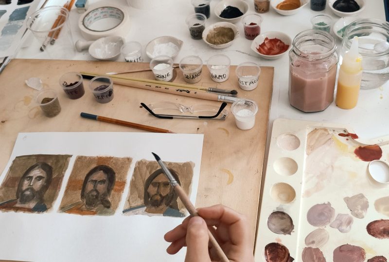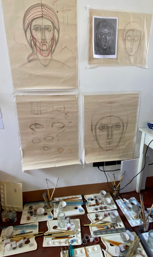 Oltre ai corsi consueti, per i corsisti più esperti sono stati proposti due nuovi corsi di approfondimento sul disegno e sul colore a cura degli iconografi russi Ol’ga Shalamova e Philip Davydov. Sono loro a raccontare il lavoro proposto.