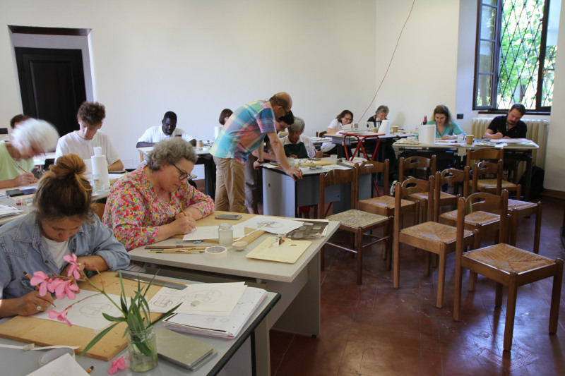 Dal 20 luglio al 7 agosto Villa Ambiveri ha ospitato i corsi annuali della scuola iconografica di Seriate. Circa una quarantina di corsisti, suddivisi in gruppi in base al livello, ha lavorato intensamente sotto la guida dei maestri della scuola. Le giornate hanno alternato sessioni di lavoro sull’icona, a momenti di preghiera e convivialità. Inoltre, per tutti sono stati proposti seminari di approfondimento su vari temi: sulla prospettiva rovesciata nell’opera d’arte, in letteratura e nella musica, sulla scuola d’arte del Beato Angelico, sulla storia dei concili, sul tema della Sapienza divina.