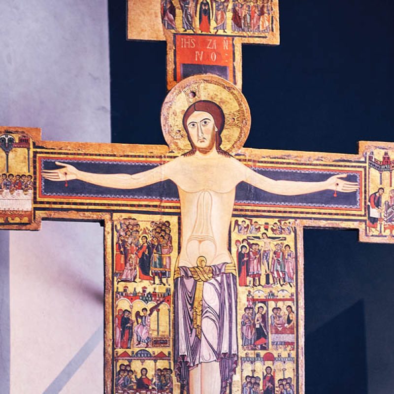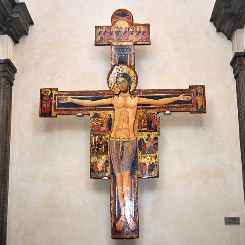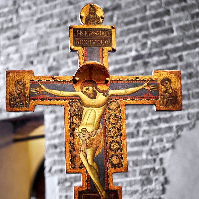 Un altro aspetto significativo è la devozione alla croce e la contemplazione in essa del mistero del Dio incarnato, morto e risorto: i grandi crocifissi visibili nel museo e nelle chiese sono una sorta di «icone», che oltre a mostrarci la passione del Signore, nelle scene della Resurrezione, dell’Ascensione e della Pentecoste indicano anche il destino di salvezza che ci attende, e uniscono ai personaggi della storia sacra anche santi locali: così avviene per la mistica Bona, una laica vissuta a Pisa tra il 1155 circa e il 1207. Come riferisce la sua Vita, mentre la santa stava pregando davanti a una grande croce dipinta (la «croce di San Sepolcro»), le apparve Cristo, accompagnato dalla Vergine, da altre due Marie e da san Giacomo maggiore, ordinandole di aprire la bocca affinché, per tre volte, potesse esser riempita dello Spirito Santo. Bona visitò più volte virtualmente, in una sorta di trance, Santiago di Compostella e il Golgota di Gerusalemme, sentendosi contemporanea e partecipe della vita del Signore e dei suoi amici. La sua festa si celebra a Pisa il 29 maggio, e le sue spoglie sono esposte nella chiesa di San Martino.