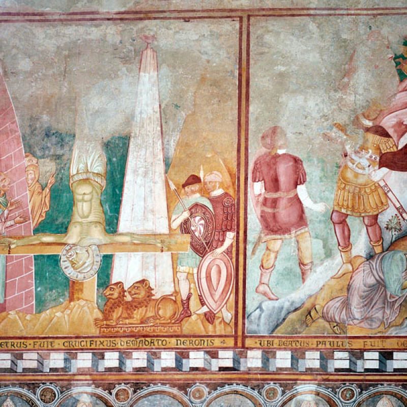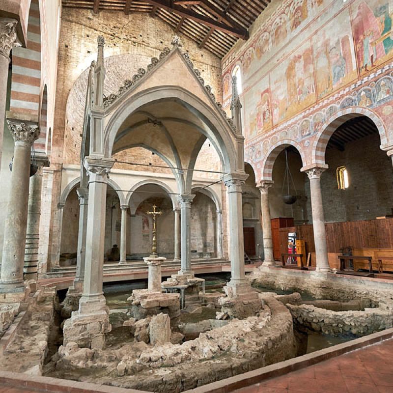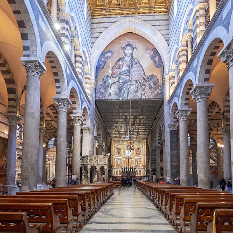 Innanzitutto, la dimensione dell’avvenimento cristiano presente qui per me oggi: per l’uomo medioevale il luogo in cui abitava partecipava della storia della salvezza, riattualizzava i momenti salienti della vita del Signore e dei santi sulla terra. Ad esempio, per Pisa la conversione alla fede era testimoniata dalla basilica di San Pietro a Grado, alla foce dell’Arno, dove secondo la tradizione il cristianesimo fu annunciato dallo stesso san Pietro. Esiste ancora il luogo dove l’apostolo si fermò. Inoltre, gli affreschi della basilica sono la ripresa di cicli pittorici romani e rimandano ad antichissime tavolette raffiguranti Pietro e Paolo, custodite nei Musei Vaticani e datate al VI secolo. I pisani respiravano così la vita della Chiesa apostolica!