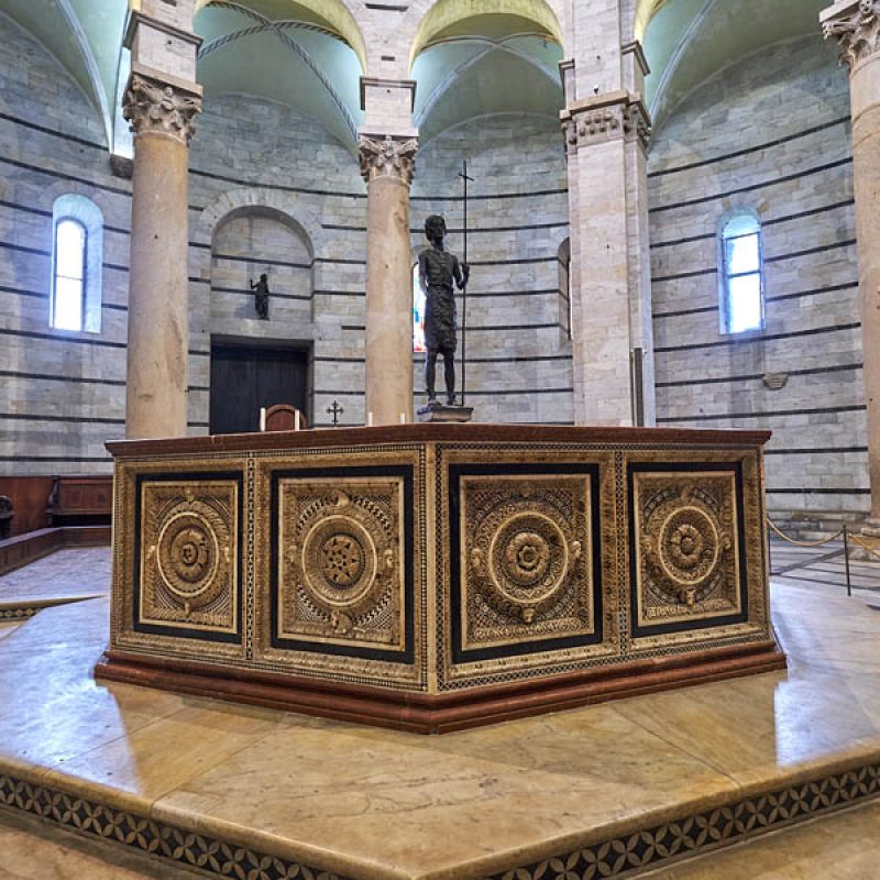 Un terzo elemento è la passione ecumenica che vide Pisa in stretti rapporti con Costantinopoli, e di cui si trovano innumerevoli testimonianze nei dipinti e nelle architetture. Molto significativo è, infine, il dialogo con «il diverso» che Pisa ci insegna, l’apertura all’altro che si denota nel rapporto con il mondo islamico. Pisa fu molto attiva nelle lotta contro i pirati saraceni e nella lotta per liberare il Santo Sepolcro. La chiesa del Santo Sepolcro nella sua forma ottagonale e nella sua dedicazione intendeva riprodurre idealmente la Rotonda dell’Anastasis, l’edificio che, a Gerusalemme, si ergeva sopra la tomba di Cristo. Questa chiesa fu edificata al ritorno dalla quarta crociata, a cui i pisani avevano partecipato con un’ampia rappresentanza. Nel contempo, l’atteggiamento della città verso la cultura araba è di grande apertura. Ad esempio, la «Madonna dell’umiltà» di Gentile da Fabriano, esposta nel museo, porta scritte cufiche nel nimbo della Vergine e intorno al drappo su cui è adagiato il Bambino. Il nome di Dio è sacro in tutte le lingue, e questo consente un dialogo fraterno anche con i musulmani di fede sincera.