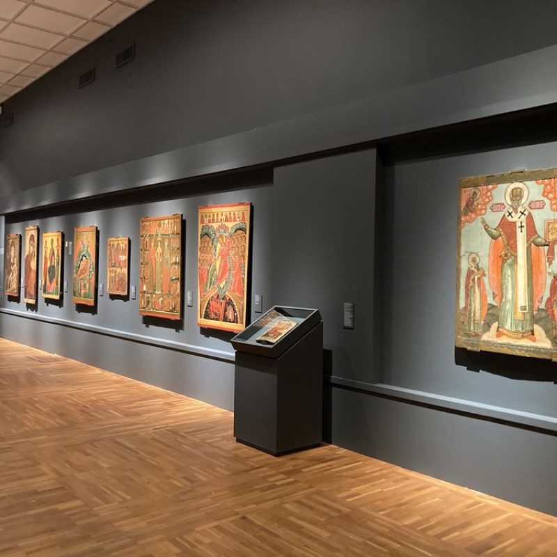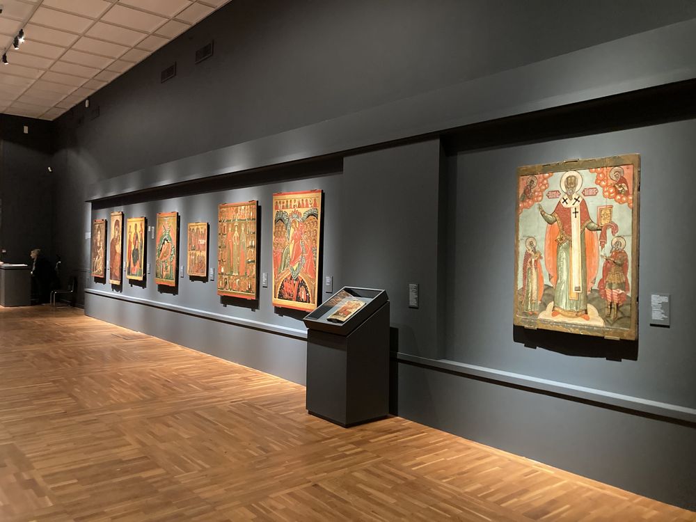 Oltre agli affreschi, in mostra vi sono alcune icone a cui Ovčinnikov ha lavorato come restauratore e copista. In particolare, numerose icone della Scuola di Pskov, per la quale il maestro ha sempre nutrito una particolare preferenza, a causa della sua profondità teologica e attualità artistica.