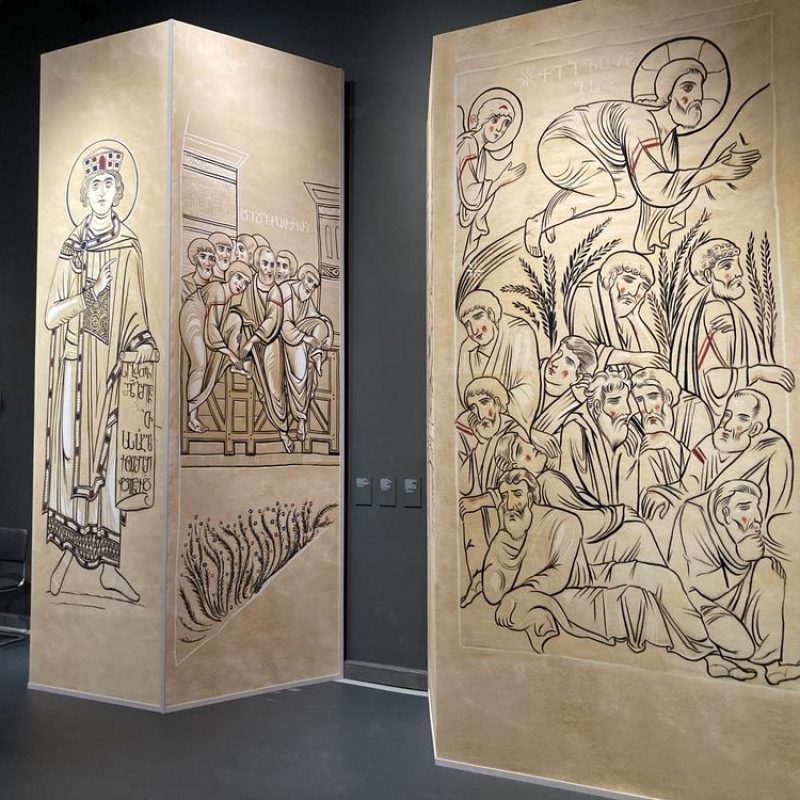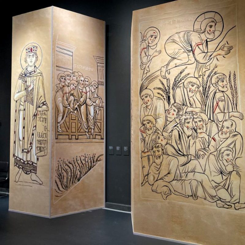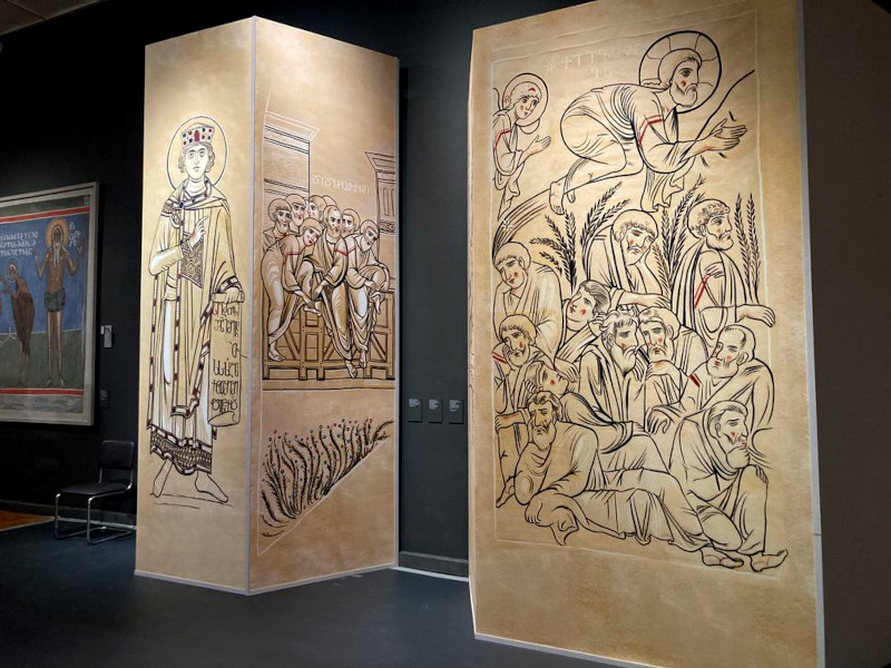 Opere di Ovčinnikov sono già state esposte più volte in diverse sedi, ma questo nuovo progetto espositivo consente per la prima volta di vedere riunita la maggior parte dei lavori del maestro: le copie di affreschi del IX-XIII secolo delle chiese del monastero rupestre di Sabeerebi a David-Garedži, delle chiese di Ateni, Betania e Ači in Georgia; delle chiese di San Giorgio a Staraja Ladoga e della Dormizione a Meletovo. Gli organizzatori hanno ricostruito nelle sale della Tret’jakov gli spazi architettonici delle chiese, così da consentire ai visitatori di vedere gli affreschi nel loro contesto originario e ritrovare gli effetti ottici, ad esempio, delle composizioni all’interno del santuario, che seguono la curvatura dell’abside.