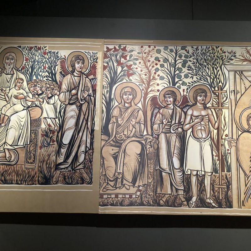Molte parti delle antiche pitture, e talvolta anche intere composizioni copiate dall’artista oggi sono purtroppo andate irrimediabilmente perdute. I visitatori possono confrontare quanto vedono all’interno del perimetro delle chiese, con le fotografie che cingono l’esterno delle «absidi», e documentano le disastrose condizioni in cui versano gli affreschi o ciò che ne resta. Aleksandr Gormatjuk, restauratore del Centro Grabar’ e curatore della mostra, ha detto che si tratta di foto recentissime, scattate da lui circa due mesi fa. Tanto più preziosa l’eredità lasciataci da Ovčinnikov, come ha sottolineato Gormatjuk: «Possiamo vedere ciò che Adol’f Nikolaevič è riuscito a salvare. Quando parliamo di “mettere in salvo”, ci immaginiamo qualcuno che sottrae qualche oggetto prezioso alle fiamme o lo nasconde in un luogo sicuro. Ma qui è stato messo in salvo un contenuto pregno di significato, un patrimonio intellettuale e spirituale che costituisce una parte sostanziale della nostra cultura».