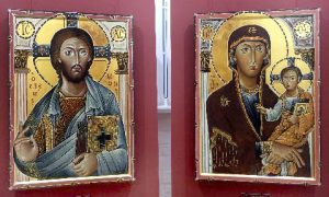 In primo piano, tra le opere esposte, il Salvatore dell’archimandrita Zinon.